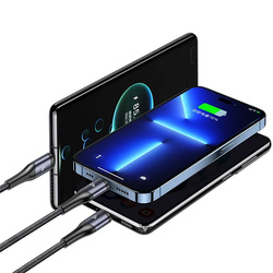 Do produkcji kabla wykorzystano materiały klasy premium, co przekłada się na długotrwałe użytkowanie. Rdzeń tego kabla stanowią miedziane żyły w oplocie z aluminium, co sprawia, iż maksymalizuje się prędkość ładowania urządzenia. Wierzchnia warstwa kabla została pokryta plecionym nylonowym splotem, dzięki czemu jest on elastyczny i trwały w użyciu, gwarantuje bezawaryjne użytkowanie przewodu bez ryzyka mechanicznych uszkodzeń. Konstrukcja jest odporna na zginanie, końcówki wzmocniono elastycznym materiałem, więc nie trzeba się obawiać o szybkie zużycie przewodu. Każda z końcówek została pokryta warstwą złota, który zapobiega utlenianiu się i zapewnia większa trwałość.