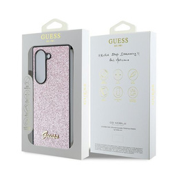Cechą wyróżniającą tę kolekcję jest subtelna, a zarazem efektowna warstwa brokatu, która dodaje etui niezwykłego blasku i wyjątkowej tekstury. Mieniący się brokat, zatopiony w powłoce etui, nadaje mu niepowtarzalny charakter, czyniąc telefon nie tylko narzędziem, ale również modnym dodatkiem do codziennych stylizacji. Dodatkowo, całość uzupełnia logo Guess w stylu vintage, będące symbolem jakości i autentyczności marki.