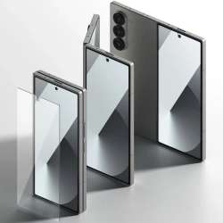 Szkło hartowane Ringke Cover Display składa się z trzech warstw: powłoki oleofobowej, szkła hartowanego oraz folii AB, co zwiększa jego wytrzymałość i funkcjonalność. Zastosowana technologia wygładzania krawędzi pozwala na naturalne zintegrowanie osłony ekranu z urządzeniem, eliminując ostre krawędzie i zapewniając elegancki wygląd.