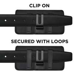Wykonany z trwałego, odpornego na zużycie nylonu, zapewnia doskonałą ochronę przed uszkodzeniami, zabrudzeniami i wilgocią. Miękka wyściółka wewnętrzna chroni ekran i obudowę przed zarysowaniami, a elastyczne boczne panele umożliwiają dopasowanie wnętrza do grubości telefonu. Etui wyposażono w metalowy klips i szlufki na pasek, które pozwalają na wygodne noszenie pokrowca w pozycji poziomej. Mocne zapięcie na rzep (velcro) skutecznie zapobiega przypadkowemu otwarciu i wypadnięciu urządzenia, zapewniając bezpieczeństwo nawet podczas intensywnego ruchu.