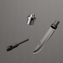 Po rozkręceniu stylisko pełni rolę rękojeści noża z otwieraczem do butelek i niewielką piłą do prac obozowych.