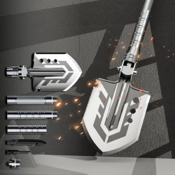 - Zawartość opakowania: saperka składana, nóż, gwizdek z krzesiwem, zbijak do szyb, pokrowiec