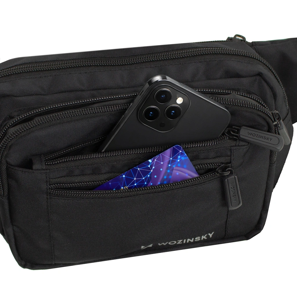 Saszetka biodrowa Wozinsky WSB-W1 na ramię unisex regulowany pasek wodoodporna - czarna