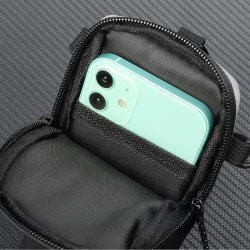 - Dopasowanie na ramię: regulowany pasek umożliwia stabilne ułożenie saszetki podczas ruchu.
