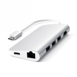 • Satechi TYPE-C Multi-Port Adapter 4K Ethernet - aluminiowy adapter do urządzeń moblinych USB-C (USB-C 60W, 3xUSB-A, 4K HDMI, Gigabit Ethernet) (silver)
