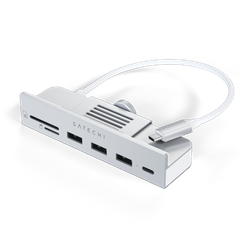 • Satechi USB-C Clamp Hub for 24" iMac - Hub do iMac M1 2021 24" oraz 27" Studio Display 2022 USB-C (USB-C, 3x USB-A, czytnik kart micro/SD) (silver)