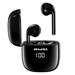 AWEI T28P ergonomiczne, bezprzewodowe słuchawki ze stacją ładowania z wyświetlaczem LED. Kompaktowa konstrukcja pełna zaawansowanej technologii, od aktywnej redukcji szumów, jakości dźwięku po inteligentny głos.