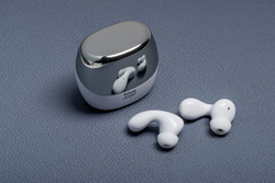 Słuchawki mają wbudowane baterie o pojemności 25 mAh, które zapewniają do 4,5 godzin ciągłego słuchania muzyki, a ich etui z dodatkową baterią o pojemności 200 mAh pozwala na wygodne ładowanie w drodze. Czas ładowania słuchawek to około 1,3 godziny, co jest wyjątkowo efektywne i pozwala szybko powrócić do ulubionych dźwięków. Port ładowania USB-C jest obecnie standardem, dzięki czemu słuchawki można ładować przy użyciu większości nowoczesnych kabli i ładowarek.