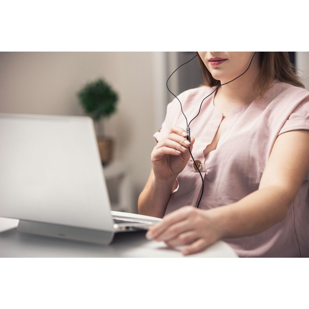 Słuchawki doskonale dopasowują się do kształtu ucha. Specjalna konstrukcja i ergonomiczny kształt zapobiegają wypadaniu słuchawek i dają poczucie komfortu przez wiele godzin. Długi przewód nie ogranicza ruchów, dzięki czemu można swobodnie słuchać muzyki i korzystać z urządzenia.