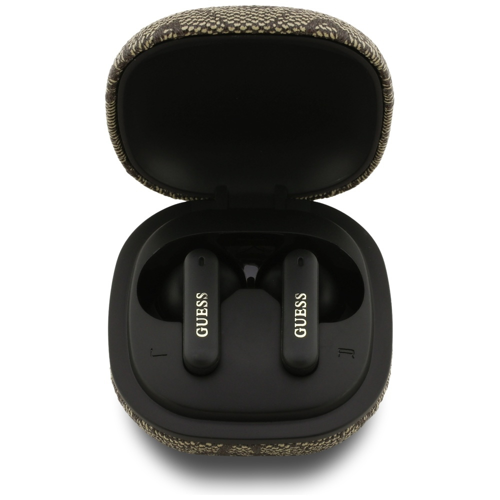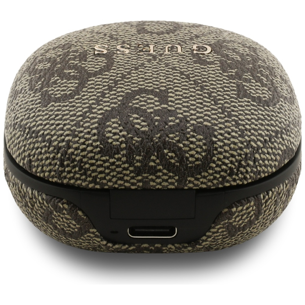 Słuchawki bezprzewodowe Guess 4G Classic Metal Logo to połączenie elegancji i nowoczesnej technologii w wyjątkowym wydaniu. Zaprojektowane z dbałością o każdy detal, wyróżniają się etui pokrytym skórą ekologiczną z charakterystycznym wzorem 4G oraz metalowym logo Guess. To model typu TWS (True Wireless Stereo), oferujący pełną swobodę ruchu i brak jakichkolwiek kabli. Dokanałowa konstrukcja zapewnia doskonałą izolację akustyczną oraz wygodne dopasowanie do ucha. Idealne dla osób, które cenią sobie styl, komfort i wysoką jakość dźwięku w codziennym użytkowaniu.
