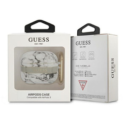Przyciągające wzrok marmurowy motyw wykończony złotym logo Guess na pasku w kolorze etui, odkreśli Twój codzienny, wyjątkowy styl.