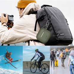 Dodatkowo etui wyposażano w praktyczny karabińczyk zwiększający zakres możliwości wykorzystania - słuchawki można podpiąć do smyczy z kluczami lub szlufki w spodniach dzięki czemu upadek czy zgubienie zestawu staje się wręcz niemożliwe.