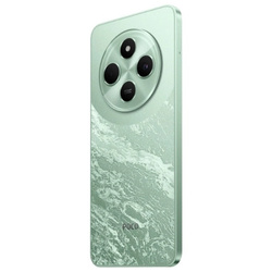 Obudowa POCO C75 została zaprojektowana z myślą o estetyce i funkcjonalności. Centralnie umieszczony moduł aparatu oraz płaska ramka tworzą spójną, charakterystyczną bryłę. Smartfon dostępny jest w trzech kolorach: zielonym, czarnym i złotym, a jego powierzchnia przypomina teksturę naturalnego kamienia.