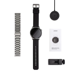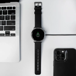 - W zestawie: zegarek, pasek silikonowy, bransoleta srebrna, ładowarka, instrukcja, narzędzie do wymiany paska
