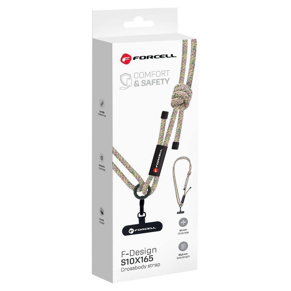 • Smycz do telefonu crossbody z regulacją długości Forcell F-Design S10X165 (max 82,5cm w pętli) zielono różowo fioletowa