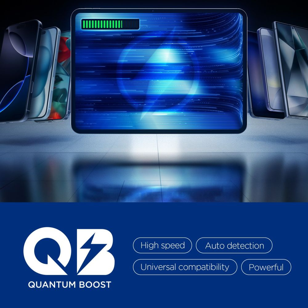 Technologia Quantum Boost automatycznie dopasowuje moc ładowania do podłączonego sprzętu, maksymalizując jego wydajność. Wbudowane funkcje Overcharge Prevention, Voltage Matching i Voltage Regulation chronią urządzenia przed przeładowaniem, nadmiernym napięciem i niestabilnym prądem, zapewniając bezpieczne i stabilne ładowanie w każdych warunkach.