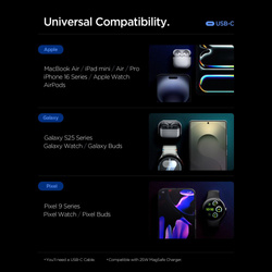 Spigen Essential EE472EU to kompaktowa i wydajna ładowarka sieciowa GaN Pro, zaprojektowana z myślą o szybkim i bezpiecznym ładowaniu dwóch urządzeń jednocześnie. Wyposażona w dwa porty USB-C pozwala elastycznie zasilać smartfony, tablety i inne akcesoria, dostosowując moc do potrzeb podłączonych urządzeń. Rozkład mocy zależy od konfiguracji – pojedyncze urządzenie podłączone do USB-C(1) może korzystać z pełnej mocy 47W, natomiast przy jednoczesnym użyciu USB-C(1) i USB-C(2) moc dzieli się na 27W i 20W.
