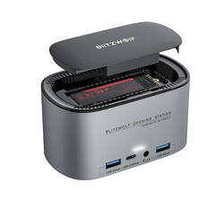 Stacja dokująca 14w1 BW-TH12 to nieocenione narzędzie, które ułatwi Ci codzienną pracę. Wyposażona w aż 14 portów - umożliwia łączenie wielu urządzeń. Pozwala przesyłać pliki z prędkością nawet 5 GB/s, a także powielać lub rozszerzać ekran na nawet 3 dodatkowe wyświetlacze. Interfejs RJ45 pomoże Ci uzyskać szybkie i stabilne połączenie z siecią, a możliwość szybkiego ładowania sprawi, że zaoszczędzisz czas i energię. Stacja ma też specjalne miejsce przeznaczone dla dysków SATA SSD.