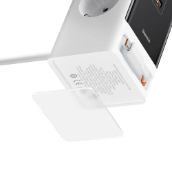 Stacja ładująca Baseus PowerCombo 65W 1.5m 2 x EU + USB-A + USB-C + zwijany kabel USB-C - biała