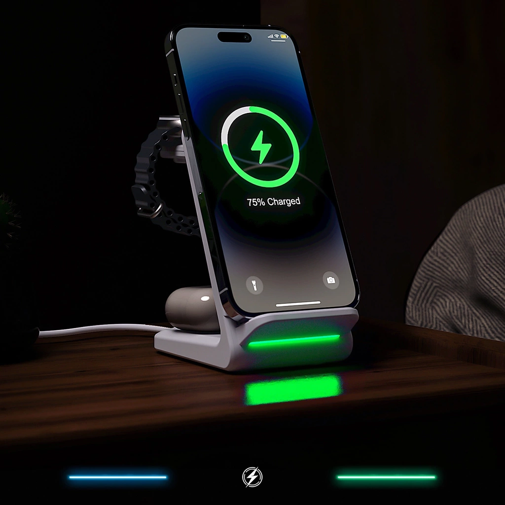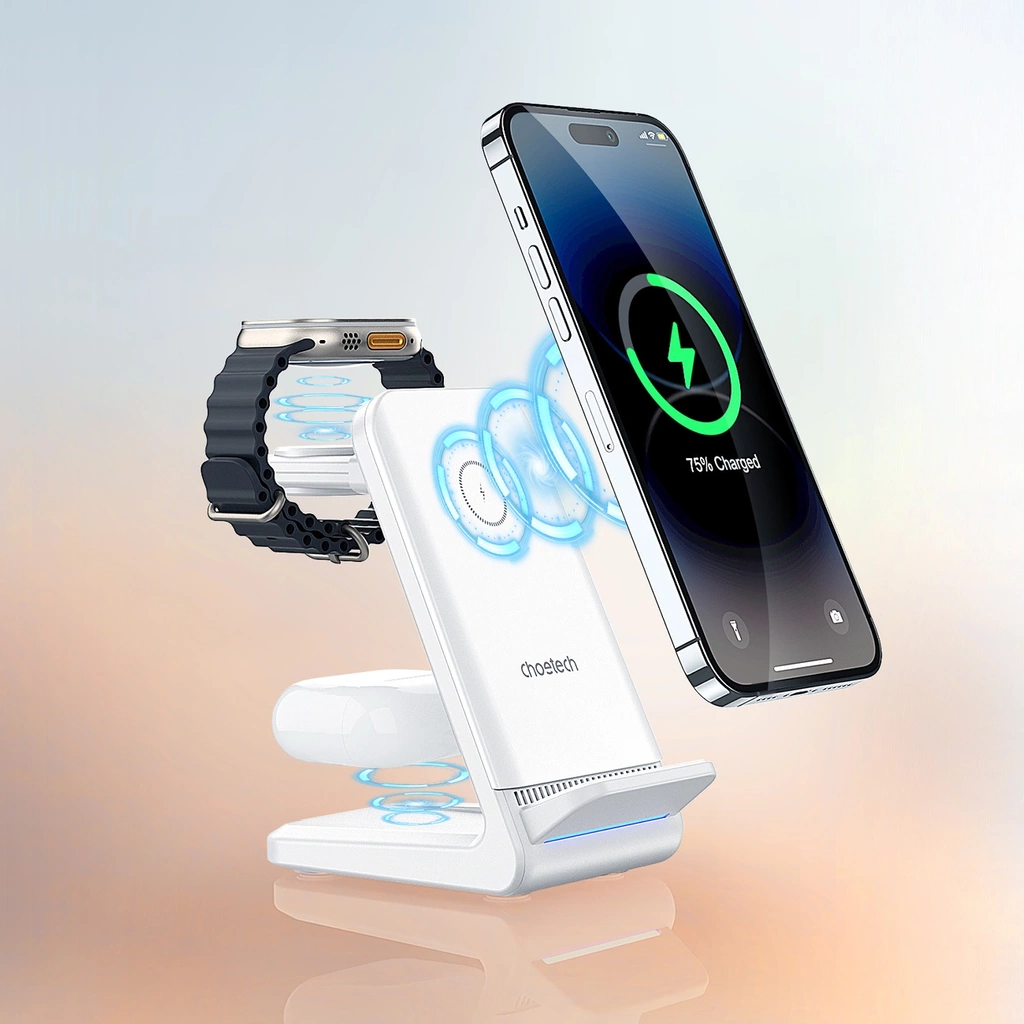 Stacja ładująca Choetech T608 dostarcza nie tylko wydajne ładowanie, ale także eleganckie rozwiązanie do jednoczesnego zasilania smartfonów, smartwatchy i słuchawek. Ten biały stojak ładowarka to więcej niż urządzenie ładowania - to centrum energii dla wszystkich Twoich ulubionych akcesoriów.