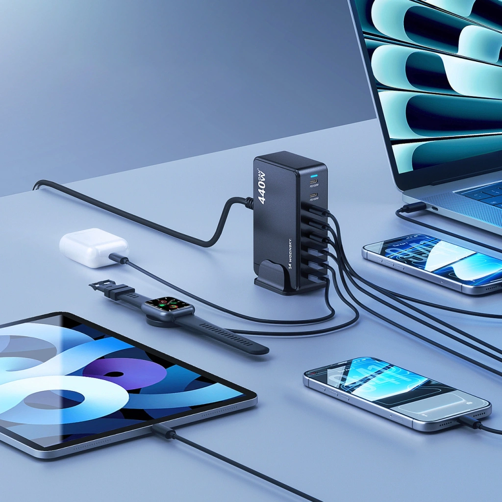 Stacja ładująca Wozinsky WSL-440 to wydajne centrum zasilania zaprojektowane do jednoczesnego ładowania wielu urządzeń. Wysoka moc całkowita 440 W pozwala efektywnie zasilać sprzęt mobilny i elektroniczny w jednym miejscu. Szeroki zakres napięcia wejściowego sprawia, że sprawdzi się w różnych warunkach użytkowych. Różnorodne porty USB-C z Power Delivery oraz wyjścia QC umożliwiają elastyczne dopasowanie do aktualnych potrzeb. To praktyczne rozwiązanie do uporządkowanego i wygodnego ładowania.