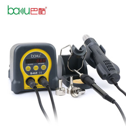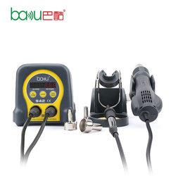Wysokiej jakości, profesjonalna stacja lutownicza do prac serwisowych. Stacja posiada system antystatyczny zapobiegający uszkodzeniu lutowanych elementów, a także czujnik odłożenia kolby (po odłożeniu stacja przechodzi w stan gotowości). Wyposażona jest w cyfrowe sterowanie temperatury mikroprocesorem oraz wyświetlacz wskazujący aktualną temperaturę. Istnieje możliwość zamontowania uchwytu po prawej lub lewej stronie, co jest szczególnie ważne dla osób leworęcznych. W zestawie: - precyzyjna lutownica grotowa - wymienne końcówki: 5/8/10 mm - podstawka pod grot Stacja została wykonana z wysokiej jakości materiałów, które gwarantują trwałość i wygodę użytkowania. Niezbędna przy pracach serwisowych związanych z elektroniką i elektroniką. Moc: 400W Napięcie wejściowe: 220V Regulowana temperatura powietrza HOT AIR: 100-450°C Regulowana temperatura powietrza lutownicy grotowej: 200-480°C Regulowany przepływ powietrza: do 120L/min Długość ramienia (z kablem): 120cm Waga: 2,20kg Wymiary (cm): 12,4 x 18,7 x 24,9