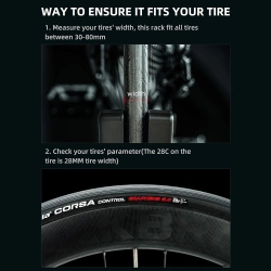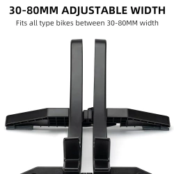 - Łatwo dopasowuje się do różnych rodzajów rowerów. Regulowana szerokość pozwala na dostosowanie stojaka do rowerów z oponami o szerokości od 3 do 8 cm.