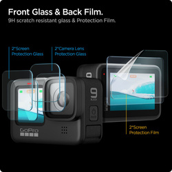 Kompleksowy zestaw ochronny od marki Spigen to połączenie szkła hartowanego i folii na ekran oraz obiektyw.