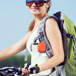 Dodatkowo etui wyposażano w praktyczny karabińczyk zwiększający zakres możliwości wykorzystania - słuchawki można podpiąć do smyczy z kluczami lub szlufki w spodniach dzięki czemu upadek czy zgubienie zestawu staje się wręcz niemożliwe.