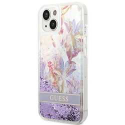 Etui GUESS Apple iPhone 14 Flower Liquid Glitter Fioletowy Hardcase