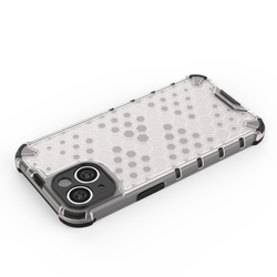 Etui z serii Honeycomb jest wykonane z termoplastycznego i wytrzymałego tworzywa, które układa się w kształcie plastra miodu. Pokrowiec jest dopasowany do iPhone 14, doskonale chroni telefon przed zniszczeniami wskutek upadków lub zarysowań (na przykład przez noszone w kieszeni klucze). Podniesione krawędzie dookoła ekranu i tylnego aparatu zabezpieczają telefon od zarysowania tych elementów kiedy ten leży na płaskiej powierzchni. Posiada responsywne przyciski i wycięcia na porty. Idealny dla osób, które cenią sobie styl, jakość i chcą zadbać o swoje urządzenie.