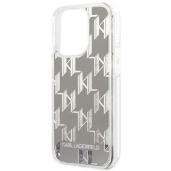 Etui pokryte przezroczystymi inicjałami znanego projektanta wyróżnia się płynnymi, mieniącymi się w świetle drobinkami brokatu, które zmieniają swoje ułożenie pod wpływem zmiany kąta nachylenia.