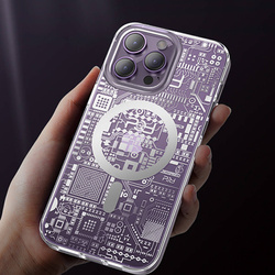Coś dla prawdziwego geeka! To transparentne etui na smartfon jest inspirowane teksturą płytki drukowanej. Wykonane z solidnego tworzywa sztucznego, skutecznie chroni urządzenie przed skutkami upadków. Wspiera technologię MagSafe, dzięki czemu możliwe jest ładowanie bezprzewodowe. Metalowe przyciski w kontrastowym kolorze sprawiają, że to etui wygląda bardzo nowocześnie. Pokrowiec jest dopasowany do iPhone 14, doskonale chroni telefon przed zniszczeniami wskutek upadków lub zarysowań (na przykład przez noszone w kieszeni klucze). Podniesione krawędzie dookoła ekranu i tylnego aparatu zabezpieczają telefon od zarysowania tych elementów kiedy ten leży na płaskiej powierzchni. Posiada responsywne przyciski i wycięcia na porty. Idealny dla osób, które cenią sobie styl, jakość i chcą zadbać o swoje urządzenie.