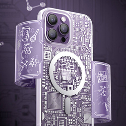 Coś dla prawdziwego geeka! To transparentne etui na smartfon jest inspirowane teksturą płytki drukowanej. Wykonane z solidnego tworzywa sztucznego, skutecznie chroni urządzenie przed skutkami upadków. Wspiera technologię MagSafe, dzięki czemu możliwe jest ładowanie bezprzewodowe. Metalowe przyciski w kontrastowym kolorze sprawiają, że to etui wygląda bardzo nowocześnie. Pokrowiec jest dopasowany do iPhone 14 Pro, doskonale chroni telefon przed zniszczeniami wskutek upadków lub zarysowań (na przykład przez noszone w kieszeni klucze). Podniesione krawędzie dookoła ekranu i tylnego aparatu zabezpieczają telefon od zarysowania tych elementów kiedy ten leży na płaskiej powierzchni. Posiada responsywne przyciski i wycięcia na porty. Idealny dla osób, które cenią sobie styl, jakość i chcą zadbać o swoje urządzenie.