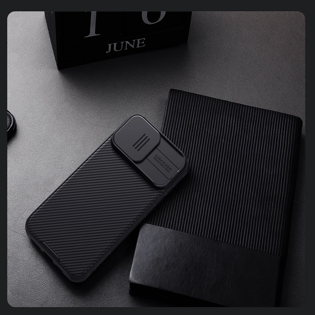 Nillkin CamShield Pro wyposażono w innowacyjną, przesuwaną osłonę obiektywu, która chroni soczewki aparatu przed uszkodzeniami i zabrudzeniami. Mechanizm przesuwania działa płynnie i jest zintegrowany z całością etui, co gwarantuje łatwą obsługę oraz nieskazitelny stan aparatu podczas codziennego użytkowania.