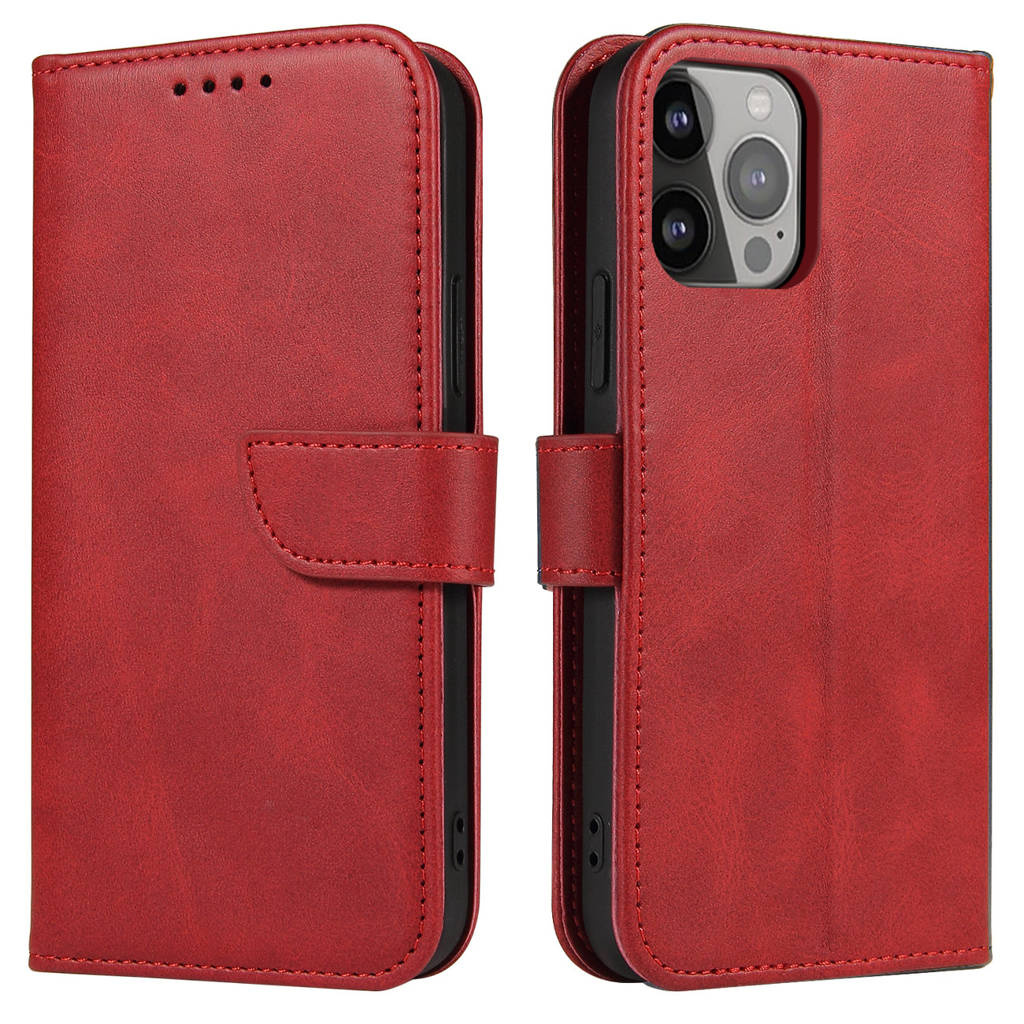 Etui iPhone 15 Pro Max z serii Magnet Case pokrowiec z klapką z funkcją portfela i podstawki w kolorze czerwonym