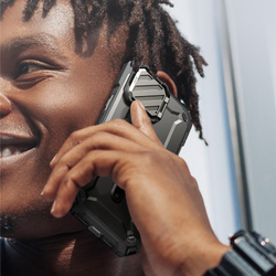 Pancerz oplatający urządzenie z tyłu i na jego krawędziach - wykonany z mieszanki miękkiego tworzywa termoplastycznego i utwardzającej powłoki poliwęglanowej, nadając mu bardzo dużą wytrzymałość. Etui wyposażono w osłony na przyciski.