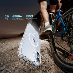 - Kompatybilność z MagSafe: Wbudowany magnes zapewnia idealne dopasowanie do ładowarek MagSafe oraz innych akcesoriów, umożliwiając łatwe ładowanie bez konieczności zdejmowania etui.
