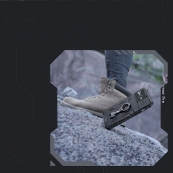 Oto jedno z najsolidniejszych etui na smartfon. Model od Nillkin z serii CamShield Armor Pro wyróżnia się wyglądem inspirowanym militariami, skusi miłośników survivalu i sztuki przetrwania. Pokrowiec jest dopasowany do iPhone 14 Pro, doskonale chroni telefon przed zniszczeniami wskutek upadków lub zarysowań (na przykład przez noszone w kieszeni klucze). Podniesione krawędzie dookoła ekranu i tylnego aparatu zabezpieczają telefon od zarysowania tych elementów kiedy ten leży na płaskiej powierzchni. Posiada responsywne przyciski i wycięcia na porty. Idealny dla osób, które cenią sobie styl, jakość i chcą zadbać o swoje urządzenie. Posiada przesuwaną osłonę na tylny aparat. Dzięki niej szkło kamery jest chronione przed porysowaniem. Jest do też dodatkowy plus dla osób ceniących prywatność i bezpieczeństwo swoich danych. Zakryta kamera uniemożliwia dostęp do nagrywania obrazu w przypadku kiedy ktoś uzyska zdalny dostęp do telefonu i włączy podgląd z głównej kamery.