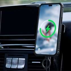Etui posiada wbudowane magnesy, dzięki którym jest kompatybilne ze standardem MagSafe. Umożliwia korzystanie z uchwytów, ładowarek i innych akcesoriów stworzonych z myślą o technologii MagSafe.