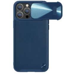 Pancerne etui iPhone 14 Pro z serii Nillkin CamShield Leather S Case z osłoną na aparat w kolorze niebieskim
