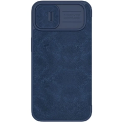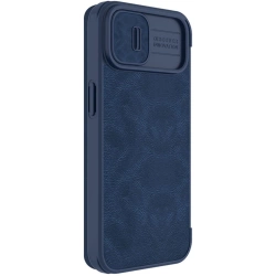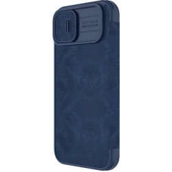 • Nillkin Qin Leather Pro Case etui iPhone 14 Plus osłona na aparat kabura pokrowiec obudowa z klapką niebieski