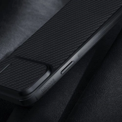 Etui z serii Synthetic Fiber S Case marki Nillkin to bardzo wytrzymały pokrowiec, który jest w stanie uchronić twój telefon od poważnego uszkodzenia po jego upadku na podłogę. Kupując nowy telefon warto jest od razu zaopatrzyć się w porządne etui, tym bardziej kiedy zdecydowałeś się na urządzenie z najwyższej półki cenowej. Wystarczy jeden nieostrożny ruch, żeby telefon spadł na ziemię. Smartfon, na którym było założone etui, a tym bardziej Nillkin Synthetic Fiber S Case ma dużo większe szanse na wyjście bez szwanku z takiego wypadku. Pokrowiec dodatkowo posiada przesuwaną osłonę na tylny aparat. Dzięki zaślepce szkło kamery jest chronione przed porysowaniem. Jest do też dodatkowy plus dla osób ceniących prywatność i bezpieczeństwo swoich danych. Zakryta kamera uniemożliwia dostęp do nagrywania obrazu w przypadku kiedy ktoś uzyska zdalny dostęp do telefonu i włączy podgląd z głównej kamery.