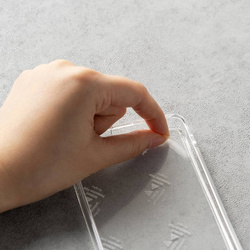 Pokrowiec składa się z dwóch połączonych ze sobą części. Tylny panel z tworzywa PC jest sztywny i odpowiada za stabilność całego pokrowca. Elastyczna ramka z TPU osłania boki telefonu, pochłania energię uderzenia i chroni ekran i aparat przez to, że wystaje ponad krawędź urządzenia.