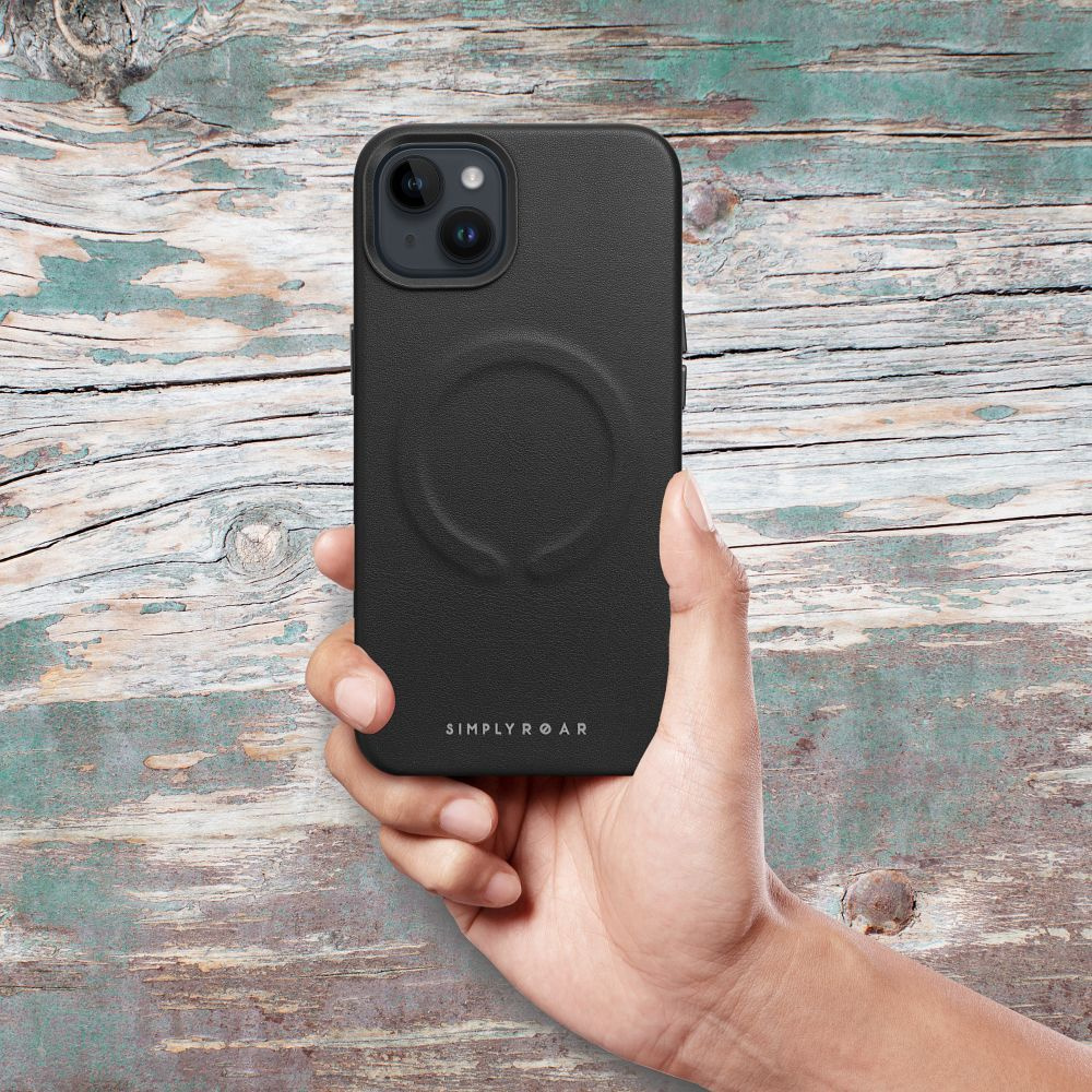Futerał Roar Leather Mag Case to połączenie funkcjonalności z estetyką dzięki wsparciu technologii MagSafe, wysokiej jakości ekoskórze z wewnętrzną wyściółką i aluminiowymi guzikami.
