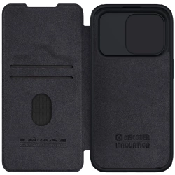 Skórzane etui Nillkin Qin Pro Leather z klapką i osłoną aparatu do telefonu iPhone 15 Pro Max w kolorze czarnym