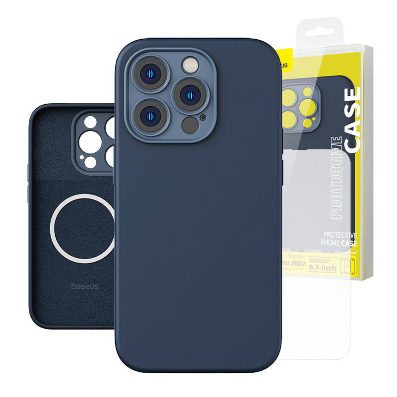 Zestaw ochronny Baseus Liquid Silica etui magnetyczne i szkło hartowane do iPhone’a 14 Pro Max (niebieski)