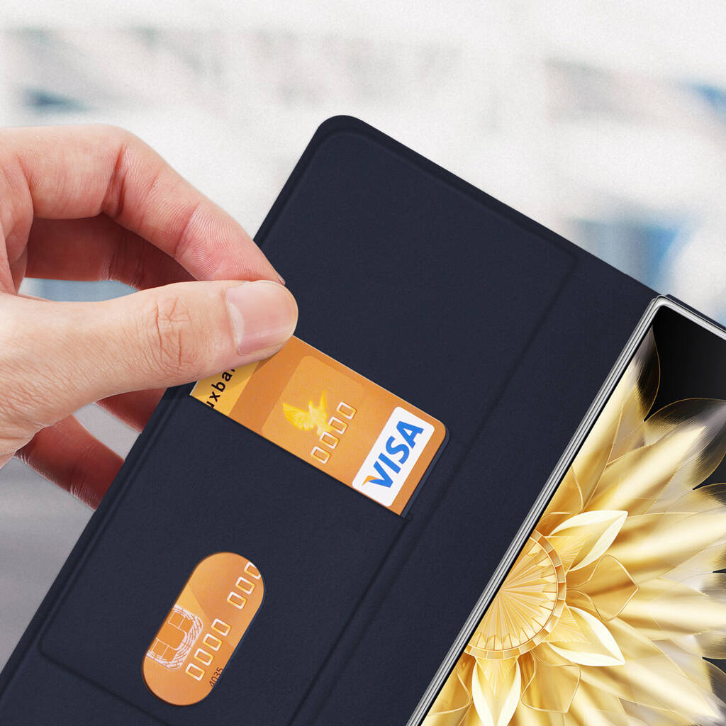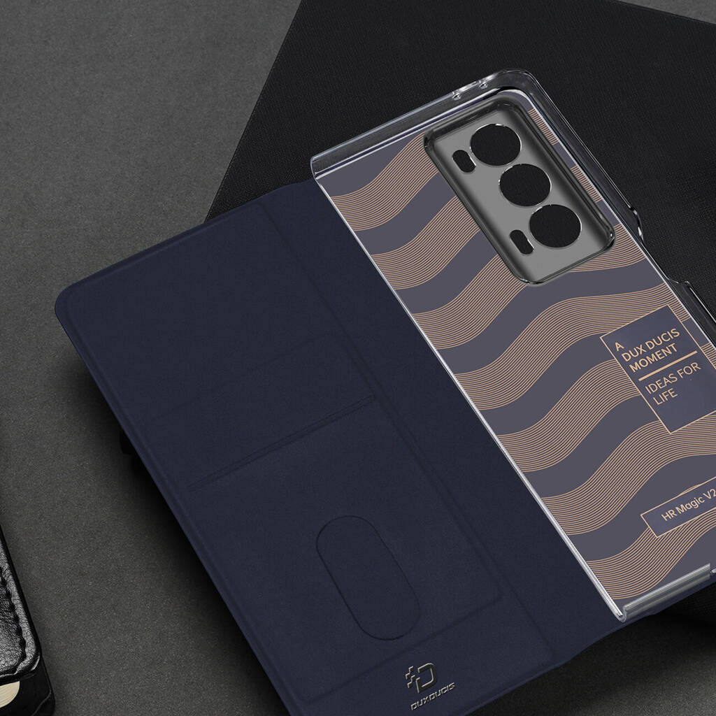 Etui skórzane Dux Ducis Bril z podstawką i portfelem do Honor Magic VS - niebieskie