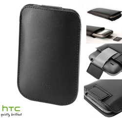 Oryginalny skórzany pokrowiec/ wsuwka marki HTC z paskiem wysuwającym telefon lub smartfon.