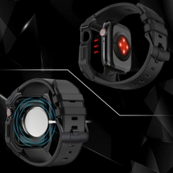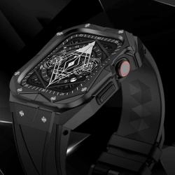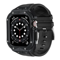 2w1 pasek Apple Watch 8, 7 (45 mm) z serii Kingxbar CYF140 z pancernym stalowym etui w kolorze czarnym